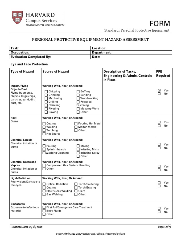 Personal Protective Equipment Hazard Assessment Form PDF Personal